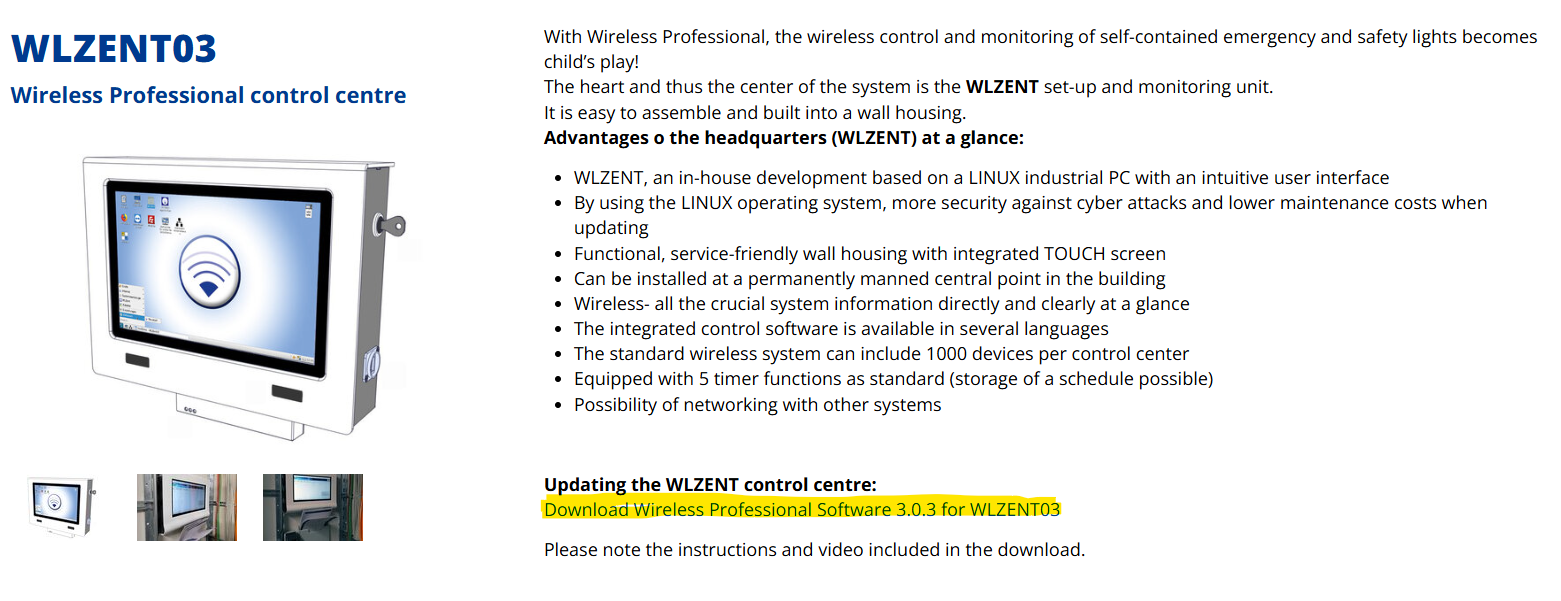 Important: The offline update may only be installed if a version older than the download version is installed on the WLZENT03. You can see which version is installed in WirelessProfessional in the top right corner under Help -> About.